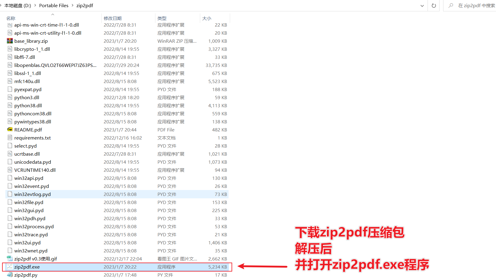 1.2.1. 从官网下载zip2pdf,解压后,打开软件