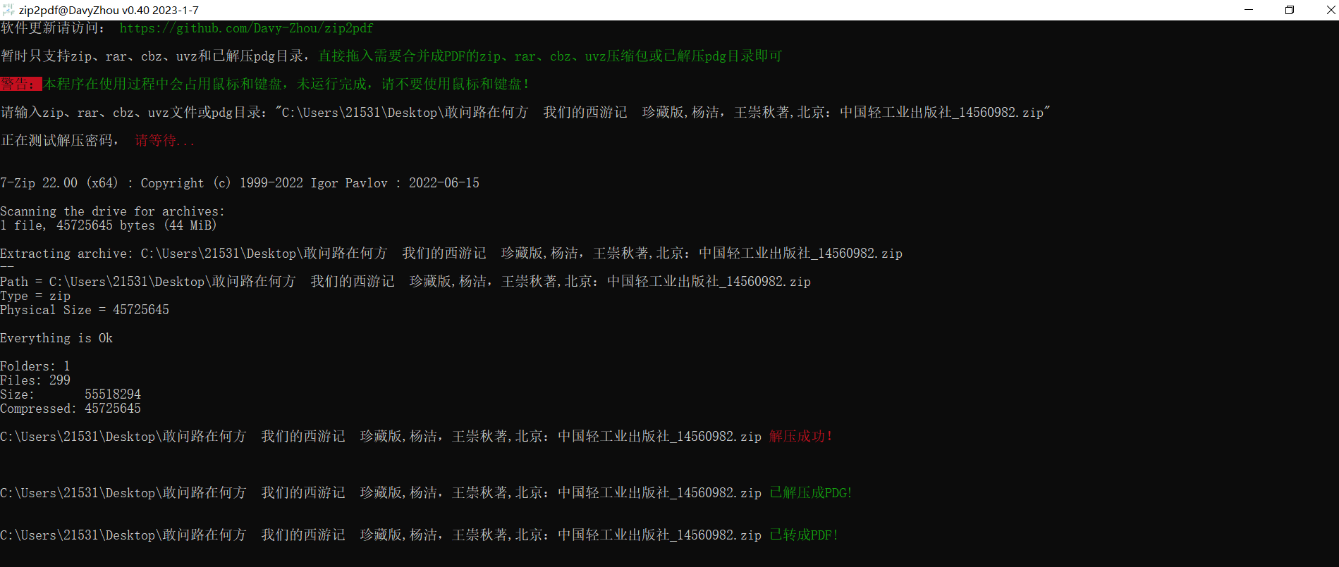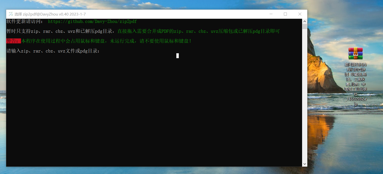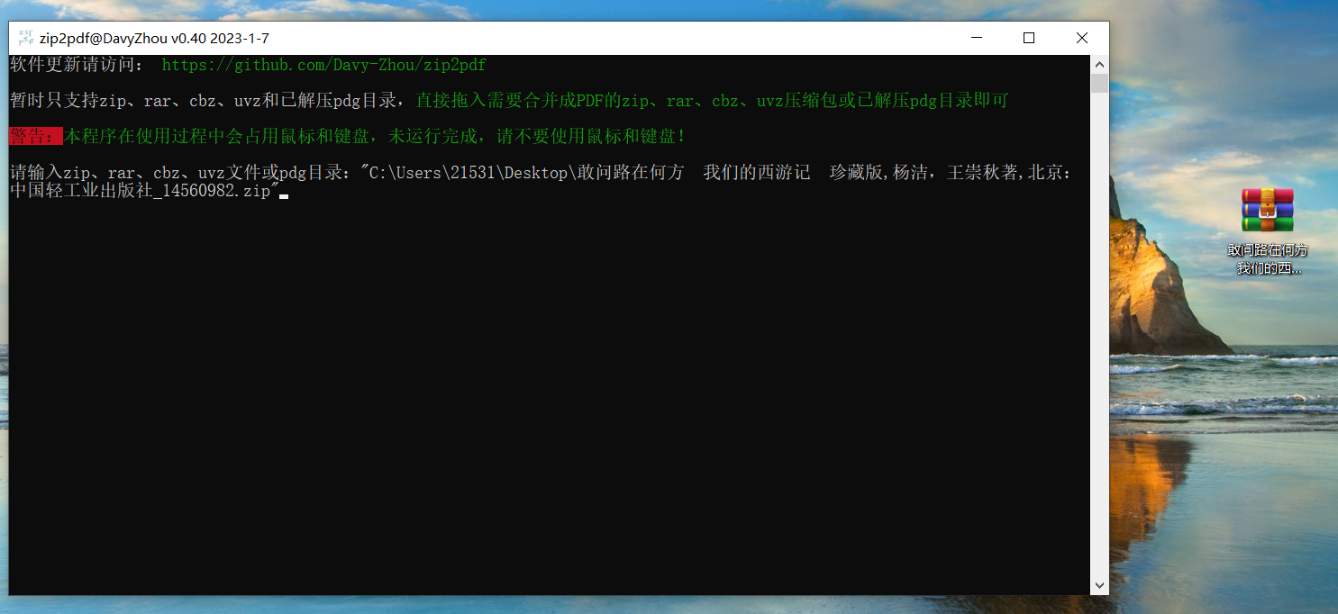1.2.2. 拖入需要解压缩的书籍压缩包后,按下键盘回车