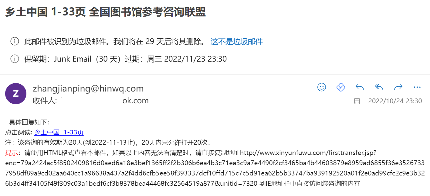提交咨询请求之后,咨询结果链接会很快发至邮箱。咨询结果有时间限制和打开次数限制。同样可以导出 PDF。